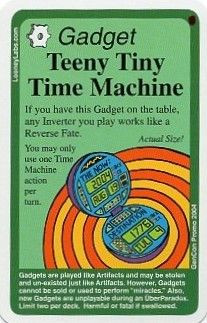 "If you have this Gadget on the table, any Inverter you play works like a Reverse Fate. You may only use one Time Machine action per turn."