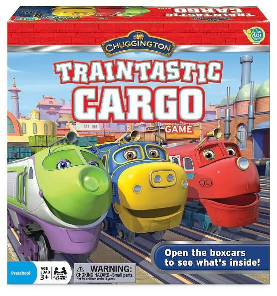 Players choose a cardboard playing board printed with a train of empty cars pulled by a Chuggington character to collect cargos on. Then they are then dealt a card showing the pattern of cargos they are to collect on their board. Patterns call for matching by combinations of shape, color, and number of items.