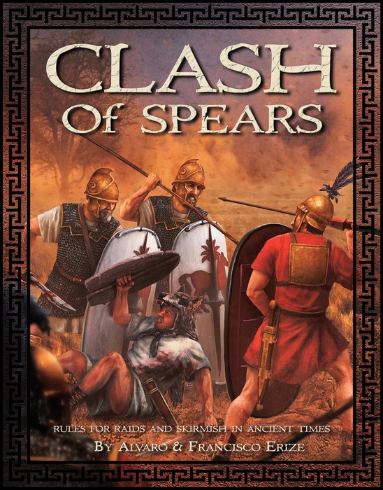 Clash of Spears is a set of miniatures wargames rules intended for skirmished of roughly 30-60 men per side in the last few centuries before the birth of Christ. Troop definitions are provided for Romans, Carthaginians, Greeks, Gauls, Iberians, Italians, and Macedonians, but the rules are intended to have wider applicability and the rules provides design rules to create your own troop profiles.
