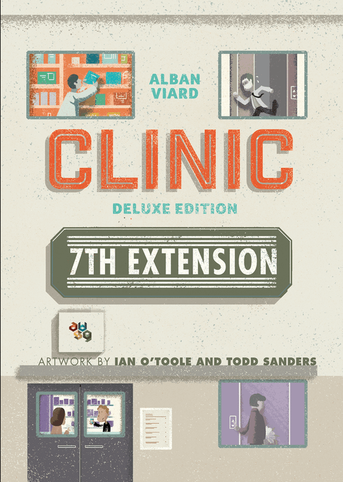 This expansion is all about cynicism, stupidity, and childishness. You'll need to electrify the treatment rooms without electrocuting your patients, add lighting in front of your Clinic, and install a few Food Trucks to accommodate your staff's new eating habits. If that's not enough, you can even pay a few taxis and buses to bring you new fake patients, give a few drops of alcohol to your real patients, or even hydrate your elderly during a heatwave in Clinic Deluxe Edition! New solo objectives have been added at the end of this rulebook.