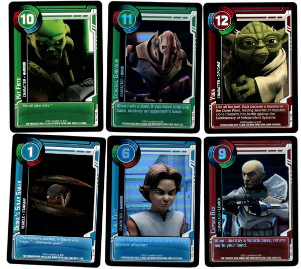 The Clone Wars Adventures Trading Card Game is a trading card game based on the mini-game Card Commander from Clone Wars Adventures MMO. Duel your opponent with cards featuring characters, ships and vehicles from Star Wars: The Clone Wars! When you win a duel, attack one of your opponent's hidden bases. Reveal the base's defense and destroy it! When you destroy your opponent's last base, you win!