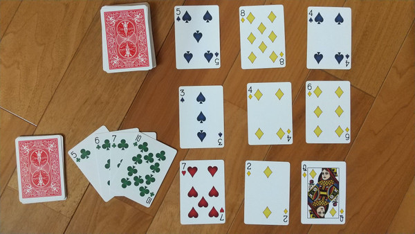 Club Fight is a quick solitaire game played with a traditional deck of cards. Using the 13 cards of the club deck, you must clear all the remaining cards of the deck from a 3x3 grid, using six types of actions available to you. However, each of the other suits has the ability to block one of your action types, if cards of the same suit appear at least three times in the grid.