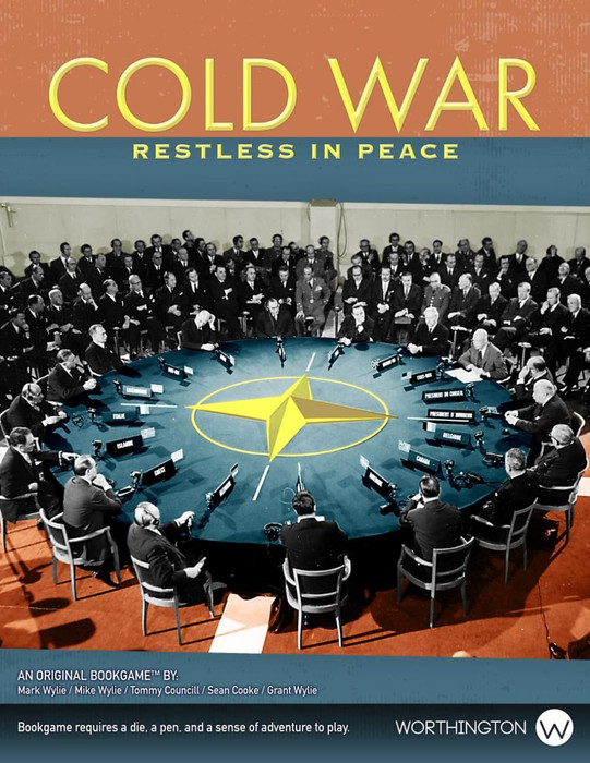 In Cold War: Restless in Peace, a fast-starting solitaire strategy game, you take command of the United States in a high-stakes battle of global influence, military power, and tense diplomacy against a relentless USSR AI opponent. With just a six-sided die and the included bookgame, you’ll jump straight into play—no boards, tokens, or complex setup required. Every action you take is recorded directly in the book as you navigate regional conflicts, the space race, and rising global tensions, balancing your strategy to avoid plunging the world into nuclear disaster.
