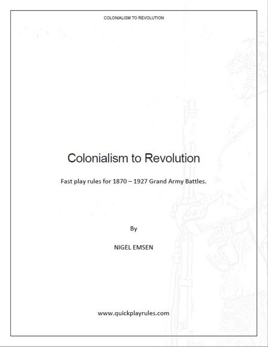 Colonialism to Revolution rules are designed to provide a simple but thematic games from the start of the Franco Prussian War (1870) till the Italian colonial wars in Libya (1927).