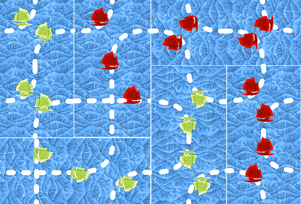 The player having the majority of ships in his color on a trade route scores 1 point for each of his ships. If a trade route has an equal number of ships in both colors, then neither player scores along that trade route.