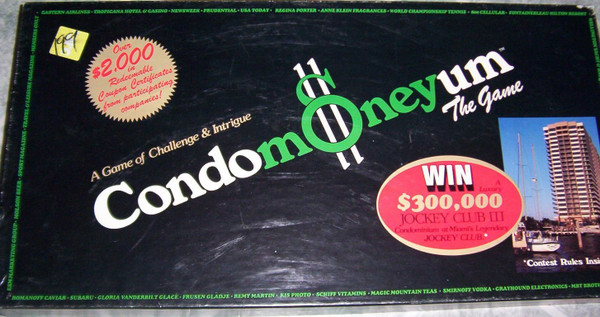 In this heavily sponsored game, the players are advertising executives who try to land accounts with clients and earn money (through the accounts, speculation on the stocks of the companies whose accounts they hold, lotteries and random events) so as to buy their condo, room by room. First one to complete his condo wins.