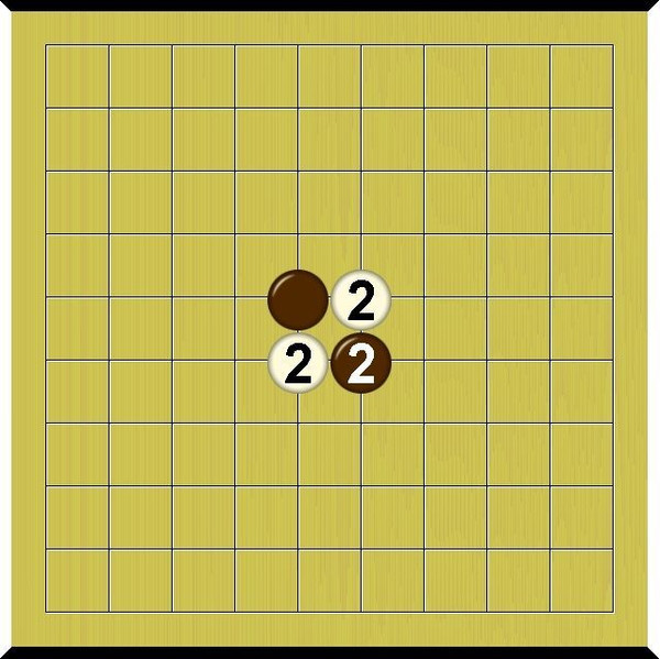 A crosscut is a 2x2 set of pieces consisting of two diagonally adjacent black pieces and two diagonally adjacent white pieces.