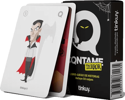 Contame: Terror (Tell me: Horror) is a narrative game, in which a player draws a card from deck "Histories". Then, he chooses one from deck "Actions" and five from deck "Draws". He must create a story using elements from all the cards, that includes a number of points awarded to the story-teller by the other players if he uses them correctly. With fearsome characters, chilling settings, very scary objects and special effects to create and tell the best horror stories.