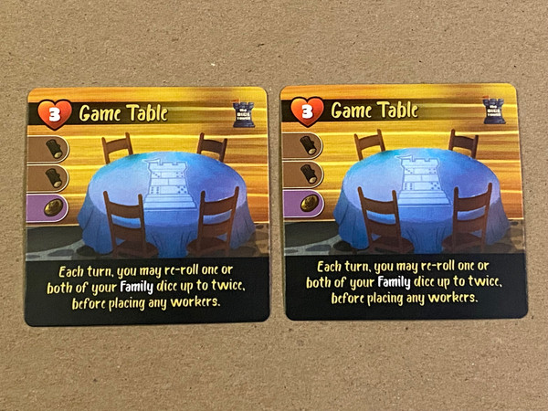 Each turn, you may re-roll one or both of your family dice up to twice, before placing any workers.