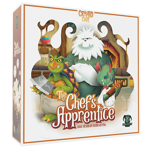 Welcome to Cryptid Cafe: The Chef's Apprentice! This game is set in the same universe as the popular Cryptid Cafe. This time around, instead of serving customers in the front-of-house, we’ll be venturing into the back-of-house, where players will take command of their cryptid line cook with aspirations of becoming a chef someday. However, before putting on that glorious white chef’s hat, they must first become…The Chef’s Apprentice.