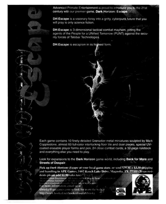 Unique puzzle board floor tiles allow an almost infinite numbers of layouts, while the finely detailed Grenadier miniatures and stand-up door pieces give the game a realistic 3D feel. A simple impulse-based system keeps all players involved in every moment of the game.