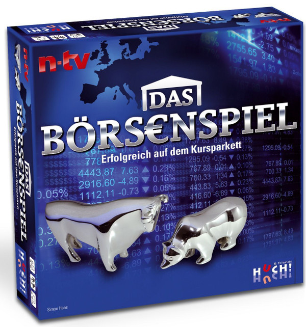 Bull or Bear? In the Börsenspiel, developed with cooperation of german news channel n-tv, two to four players test if one of then have good luck with investments. The game goes around buying and selling of papers from 4 big companies. But the players must act carefully: those actions will have great influence over the price of the papers, the trends and the dividends.
