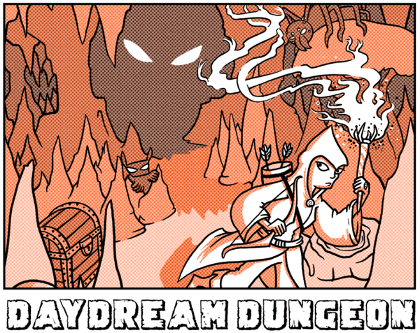 Daydream Dungeon is a single-player dungeon crawl played entirely with a single piece of paper, a 6-sided die, and a pencil. A key feature is that the game requires no erasing, so once an adventure is completed, the player can see every action they took on the page.