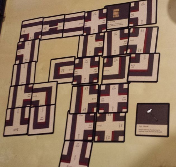 The cards consist of Path Cards - hallways, intersections, and dead ends - Item Cards - which can be used at certain spots in the game - and Choice Cards - where the player needs to make a decision regarding their path.
