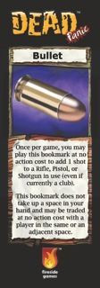 Dead Panic: Bullet Bookmark is a small expansion for Dead Panic that can be used once per game to allow a player to reload one pistol, shotgun, or rifle with one bullet.