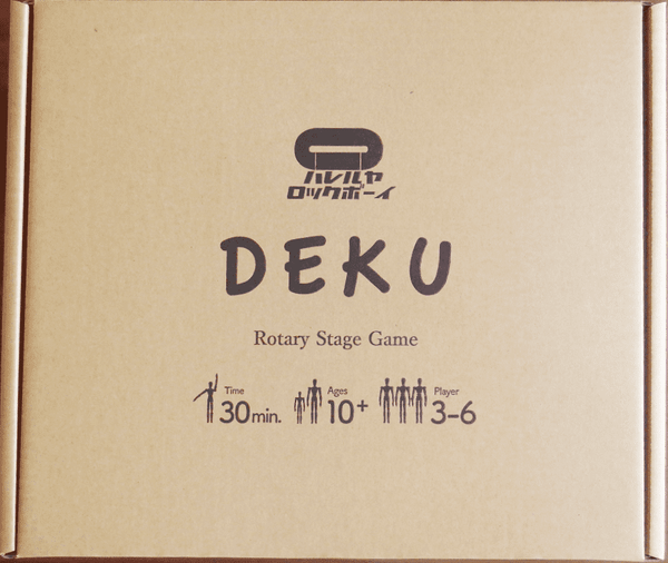 DEKU is a party game that comes with two stand-up artist model figures, a die, words and phrases on cards, and multiple blocks. You use the box to create a double-sided stage of sorts, with teams facing one another and a wall on the stage between the teams.