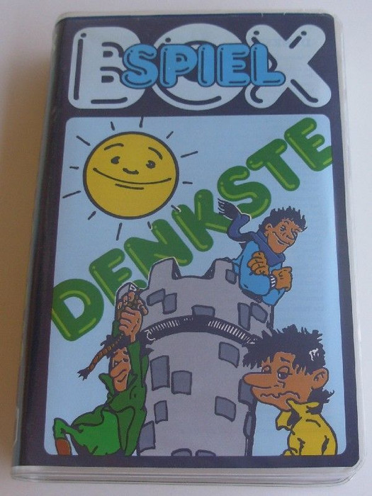 Think! This race game involves moving your coloured pawn along the track according to selections made with rotating discs, with some element of double-think. Not a dice game as the cover illustration shows. NOT to be confused with Denkste by Hexagames, which is a dice game.
