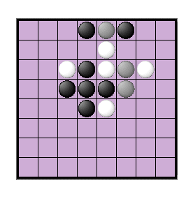 + When a player flips an enemy stone, it becomes gray. If a player flips a gray stone, it becomes one of his own stones.
