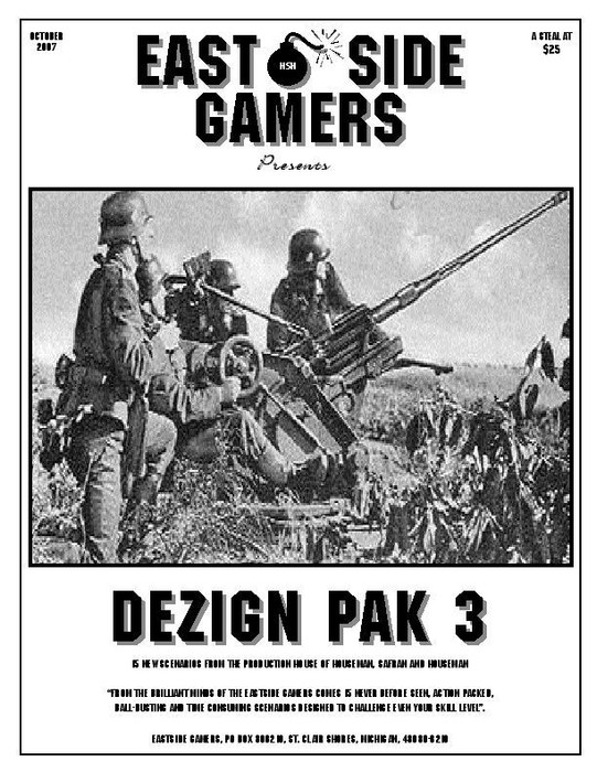 Dezign Pak 3 is a scenario pack for ASL. It contains fifteen scenarios from a variety of theaters (including an early Korean War action involving poor Task Force Smith).
