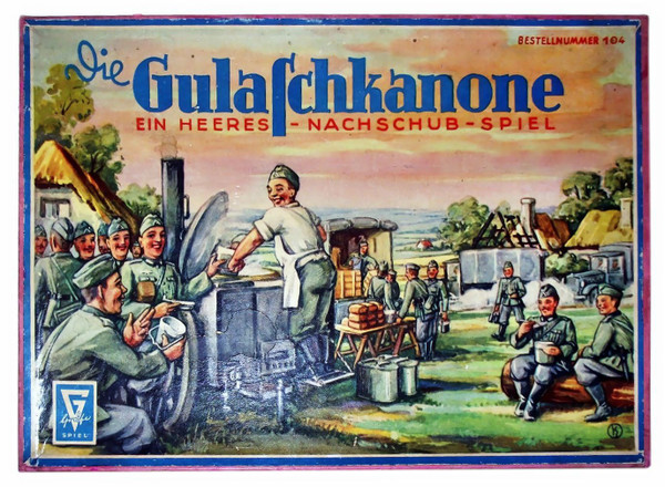 The two players each have 3 armies (red, yellow, blue) with 3 divisions. The goal of the game is to bring a provision transports (meeples) from the depot to every division. Movement is determined by a die. On several spaces the transports will be shelled and may be delayed or destroyed. The player who gets the most transports (meeples) to his field kitchens wins the game.