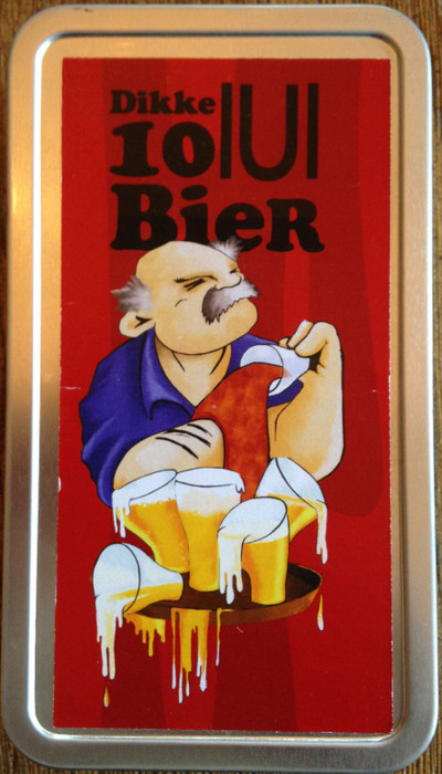 Players gets sets of cards numbered 1 to 5. First player is the bartender. Every player puts down a card blind. Bartender tries to guess how many beers are pictured on the cards on the table. Next player says higher, lower or equal. On higher the player calling that calls a higher number and play continues with the player next to him. On lower and equal cards are turn over and total is checked. If total is right caller gets a coin otherwise he looses one. Then a new round starts. After five rounds players pick up there used cards again. Rounds continue until one player reaches 4 coins. He wins. If played with real coins het gets all the coins in play to buy a beer.