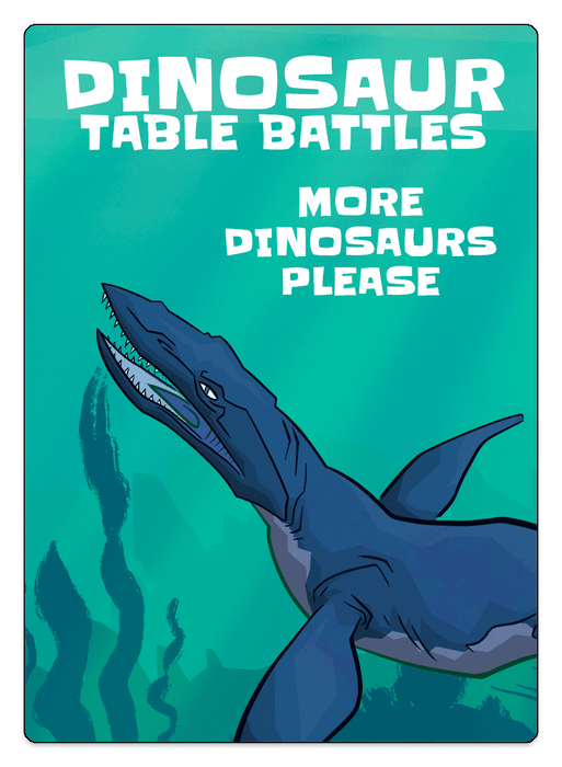 This is an expansion for Dinosaur Table Battles. What happened is that Mary asked for more dinosaurs – she may or may not have said please, and it may or may not have been a request. Regardless, six new dino-combatants are ready to join the fifteen from the base game.