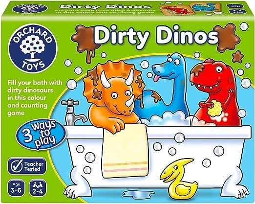 Spread the cards in the middle of the table, spin the spinner and race to find a dirty dino that matches by colour and type. Once everyone has a tub full of clean dinos, count the number of bubbles... the player with the most wins the game!