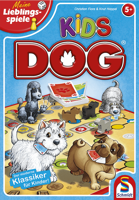 In Kids DOG, players use cards in their hand to move their three dogs from their start space to home. On a player's turn, they play one of the three cards in their hand, then move one of their three dogs according to what's on the card played: