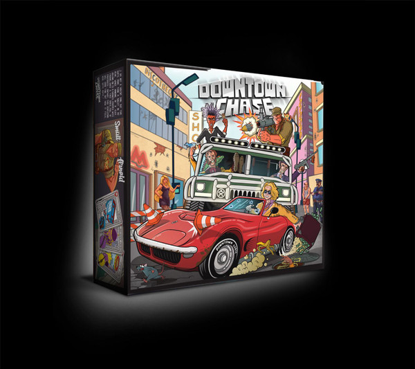 Downtown Chase is a semi-cooperative, card play, conflict resolution, dice rolling board game where 1-4 players play against the game and against each other, at the same time. Players move around the city streets trying to acquire the right location and the right weapon to eliminate Johnny the Quick – the guy nobody in town likes!
