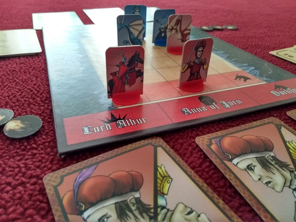 Drakberget is a card driven duel between two players, age 10 and up, where the goal is to capture the opponent's heir while protecting their own.