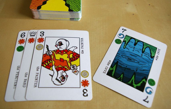 This is game for the Decktet card game-system, loosely based on Waving Hands by Richard Bartle. Players become wizards casting spells and trying to eliminate all their opponents. Spells need both energy runes and activation runes. Players play cards in front of them, one after the other each turn, forming their spell sequence. When a card with an activation rune is played, they choose which energy runes to use to cast a variety of effects.