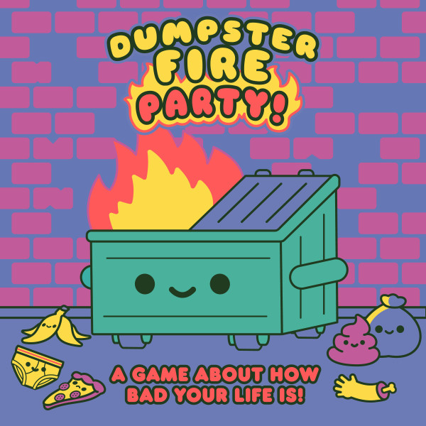 Dumpster Fire Party! is a storytelling game in which you and your friends share the absurd, embarrassing, and hilarious stories that make us want to chuck our whole life in the dumpster and set it ablaze.