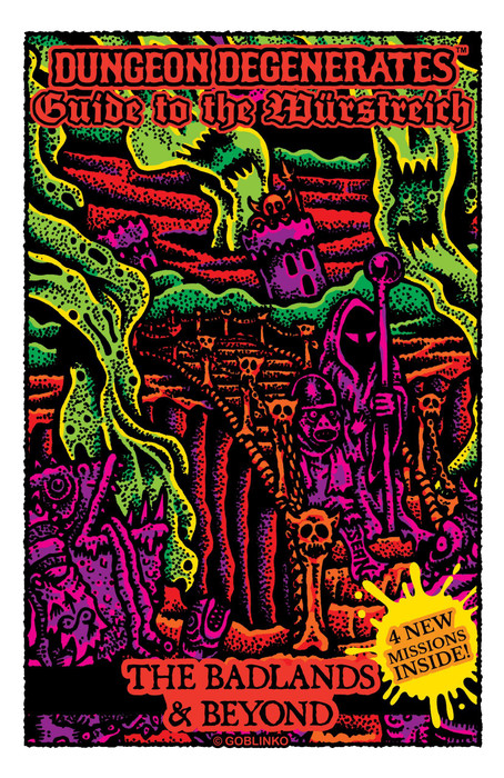 The Badlands & Beyond is a ghoulish guide to the landmarks & lifestyles of the Würstreich’s nastiest & nameless. Tour the magic mangled moor & discover its brutality & barbarism, from the smelly Goblin Fortress to the smellier Blasted Heath! The Badlands & Beyond book is full color, lavishly illustrated with lurid descriptions of the Würstreich, its history, culture & denizens - with 4 NEW MISSIONS INSIDE! Really adds another dimension to your game play. 32 pages, pamphlet style.