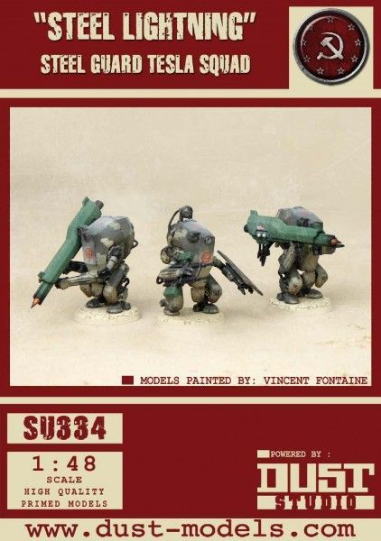 The Tesla Squad of the Steel Guard is one of the most feared combat unit on the planet. Nobody ever faced them that wasn’t unchanged after this experience. In combat it uses some of the most powerful infantry weapons known to man and is equipped with the new version of the Steel Guard armor. The squad is presented here in desert colors, as used in the Middle-East, circa 1947.