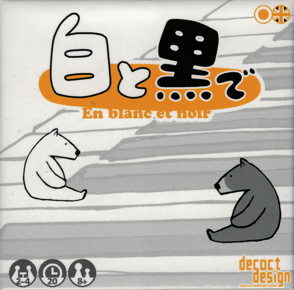 ç½ã¨é»ã§ ("En Blanc et Noir") is a pattern matching card game with a deck of black or white cards, each with a pattern on the face. On their turn players take two actions, either drawing a card, playing a card face down onto the "map", or playing a card in front of them face up that has a pattern matching the map for points.