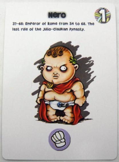 Nero is a "Bully" Promo Card. If left unsupervised these Evil Babies shove an Evil baby from another Orphanage. Choose any Time-Nanny, that Time-Nanny must select one of their Evil Babies and give it to a Time-Nanny to their Left or Right.