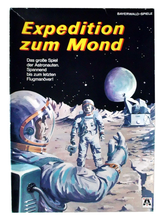 The players move from earth to the moon and back. The first player back on earth wins the game. Movement is determined by 3 dice. The player may chose the result of one of the 3 dice to move his piece. After each players turn, the turntable is rotated one step, changing the available flight paths. The players may block each others flight manoevres by placing stop-counters on the flight control panel of their opponents.