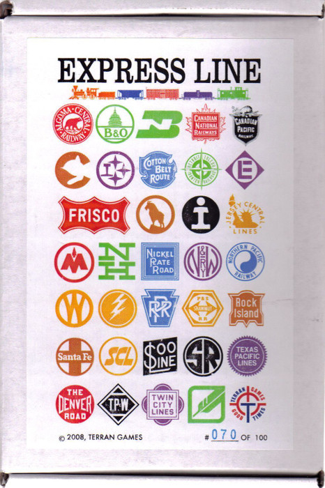 The dice and cards show 32 different Railroad Logos which regulate play. Each player represents a Tycoon chosen at random. Each Tycoon has unique play abilities and victory conditions. The object is to reach your maximum Rolling Stock points.