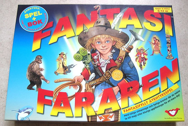 Fantasifararen ("The Fantasy Traveler") is a Swedish game recommended for children 6-12 years old. It is based on a book, "Fantasifararen - Jakten på Kapten Klos ring" that is included in the game box.