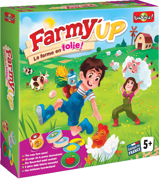 Roll the dice in the 3D farm. Chicken? Cow? Fruit? Great moments of fun to see who will be the first to grab the right wooden disk. With Farmy’up, a game of speed and deduction, children learn about life on the farm, from the hen house to the vegetable garden.