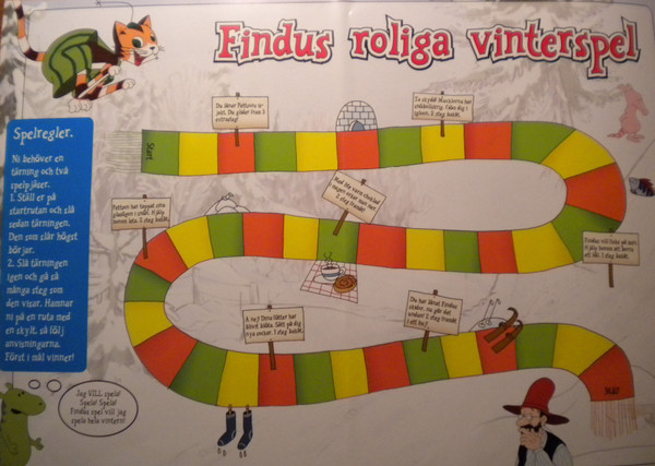 A roll and move game for children. Based on Pettson and Findus (in Swedish: Pettson och Findus), a series of children’s books written and illustrated by the Swedish author Sven Nordqvist. The books feature an old farmer (Pettson) and his cat (Findus) who live in a small farmhouse in the countryside.