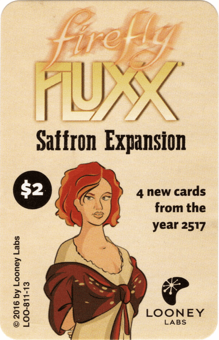 Firefly Fluxx: Saffron Expansion is a mini-expansion for Firefly Fluxx that consists of a Saffron Keeper card and three goals that require Saffron (and other Keepers) to win.