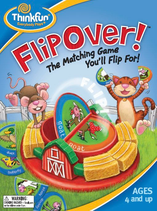 In this fun matching game for 2-6 players, kids try to be first to get their animals into the barn! Players search their cards to complete an animal image, then use the Barnyard Flipper to reveal the next image to be matched. Play continues until all images have been matched and all animals are back in the barn!