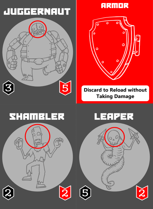 Each turn you will draw cards that may be items that can help you such as additional bullets, bandages to add health, or armor that will allow you to reload your ammo. There are several types of zombies including armored zombies and the dreaded chicken zombie!