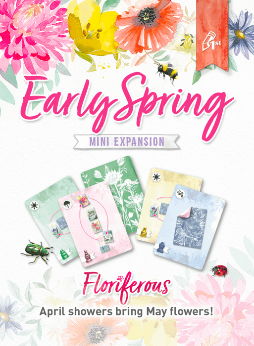 The Early Spring Mini Expansion introduces 3 new action cards in each player color. These single-use cards introduce ways to switch cards around in the garden and look at face-down cards. Enjoy the new strategies in your floriferous garden!