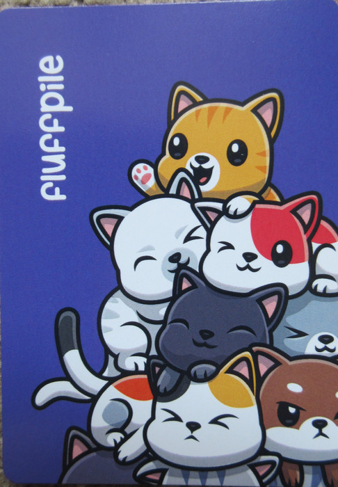 Players get a hand of five cards and take turns placing cards on a 2x6 grid; if they have multiple cats of the same color they can play them all at once. Opponents can play puppy and bird cards to remove cats from the grid, with the goal being to be the first to collect twelve cats.