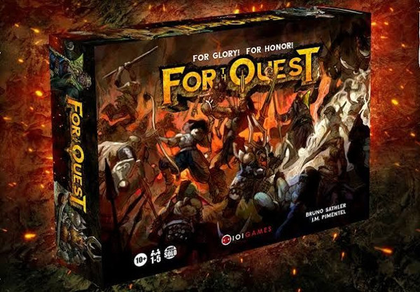 For the Quest is a dungeon crawler game for 1-5 players aged 10+. In it, a group of four Heroes assist the wise Benor against the terrible forces of Nokron, the Lord of Shadows. These Adventurers will seek to repeat the feat of the past and undertake various missions to weaken the power of Nokron, which will do everything to not be overwhelmed as it was in the past.