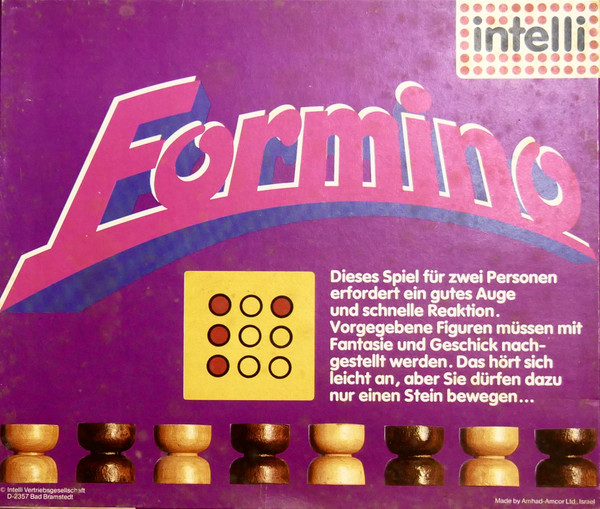 With 4 of their own pieces each, the 2 opponents try to recreate the winning constellations of their card "hand" - which they have on their tray (integrated in the game board) - on the 3x3 game board, whereby only one piece may be moved per turn.