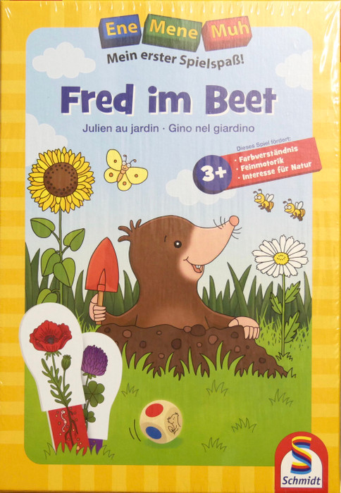 The bed must be planted with flowers before Mole Fred digs up the bed. Cooperatively, everyone plays against Fred and rolls the dice in turn: color means putting a flower in a slot of the same color; rolling the dice Fred moves one space towards the goal and Ladybug plants any flower. Fred wins if he reaches the goal before all the flowers are planted, otherwise the players win together. In the competitive variant, everyone plays with a number of flowers of any color and wins if they have planted all the flowers before Fred reaches the finish line.