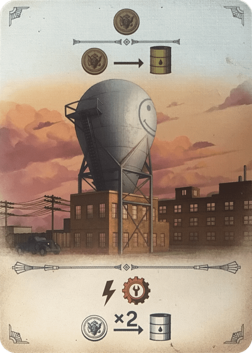 Upgraded effect: Discard 1 money to gain 1 oil up to 2 times.